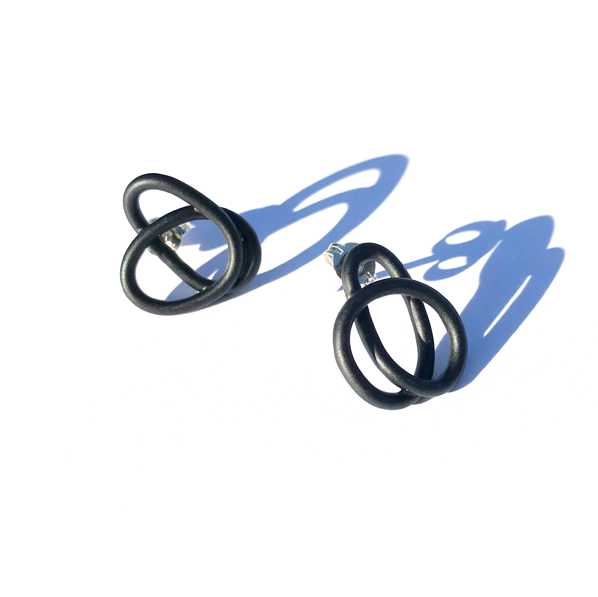 Made from powder coated copper with a sterling silver post.